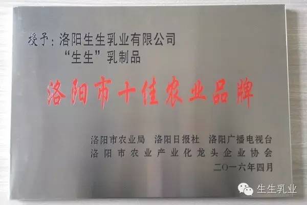 洛陽生生乳業(yè)有限公司獲洛陽市“百強(qiáng)農(nóng)企”、“生生”乳制品榮獲“洛陽市十佳農(nóng)業(yè)品牌”