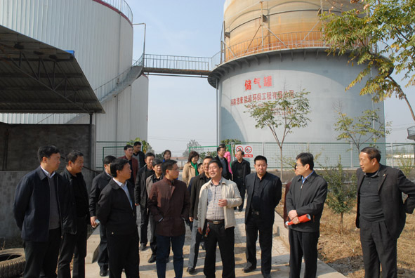 考察團(tuán)一行,重點(diǎn)了解公司投資475萬元于2014年建成的2000立方的大型沼氣集中供氣工程,該工程日產(chǎn)沼氣達(dá)1000立方,主要用于公司內(nèi)的生產(chǎn)、生活用氣和平樂鎮(zhèn)翟泉村300戶居民的生活使用。